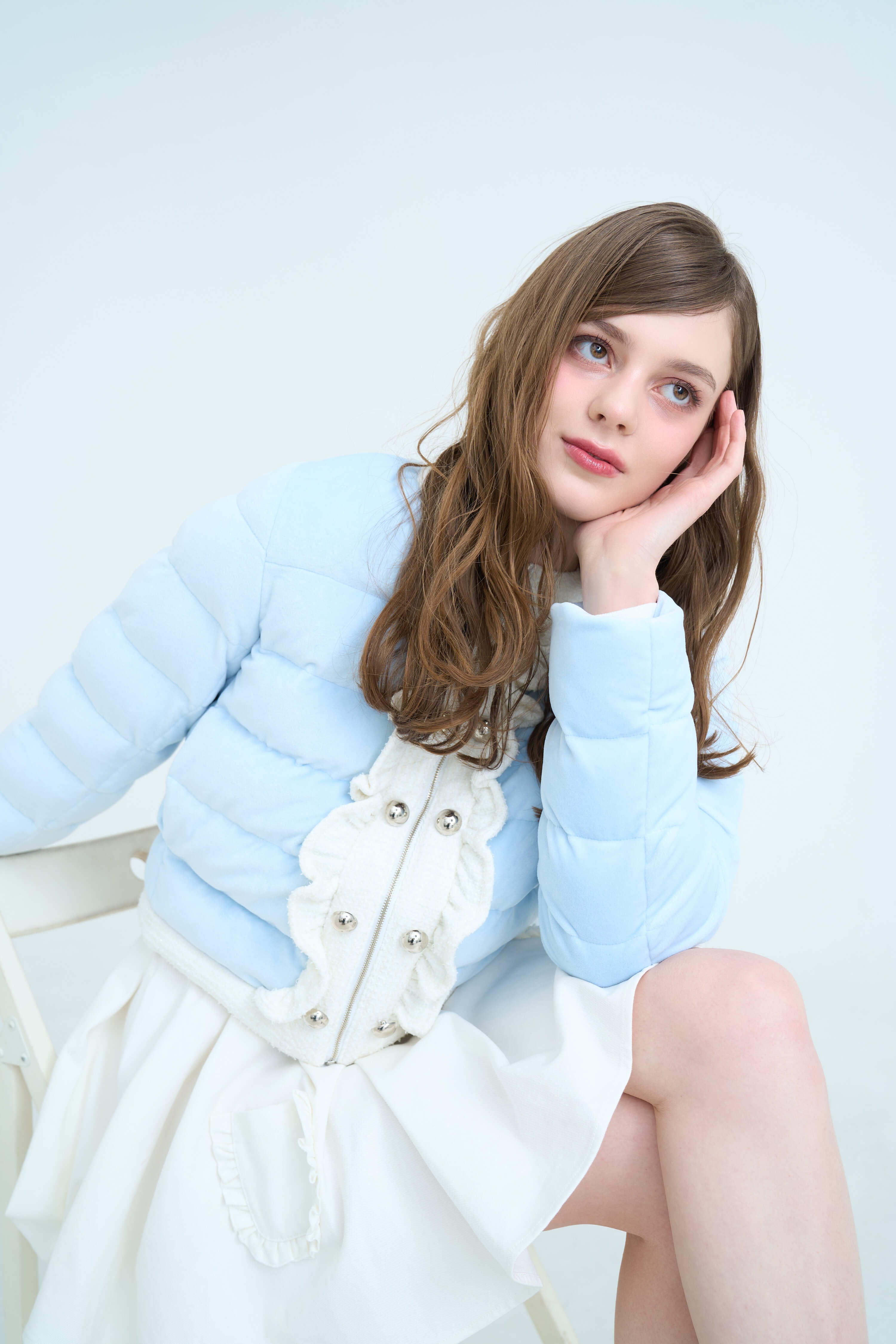 繊細なツイードのフリルをあしらった“主役級アウター”。