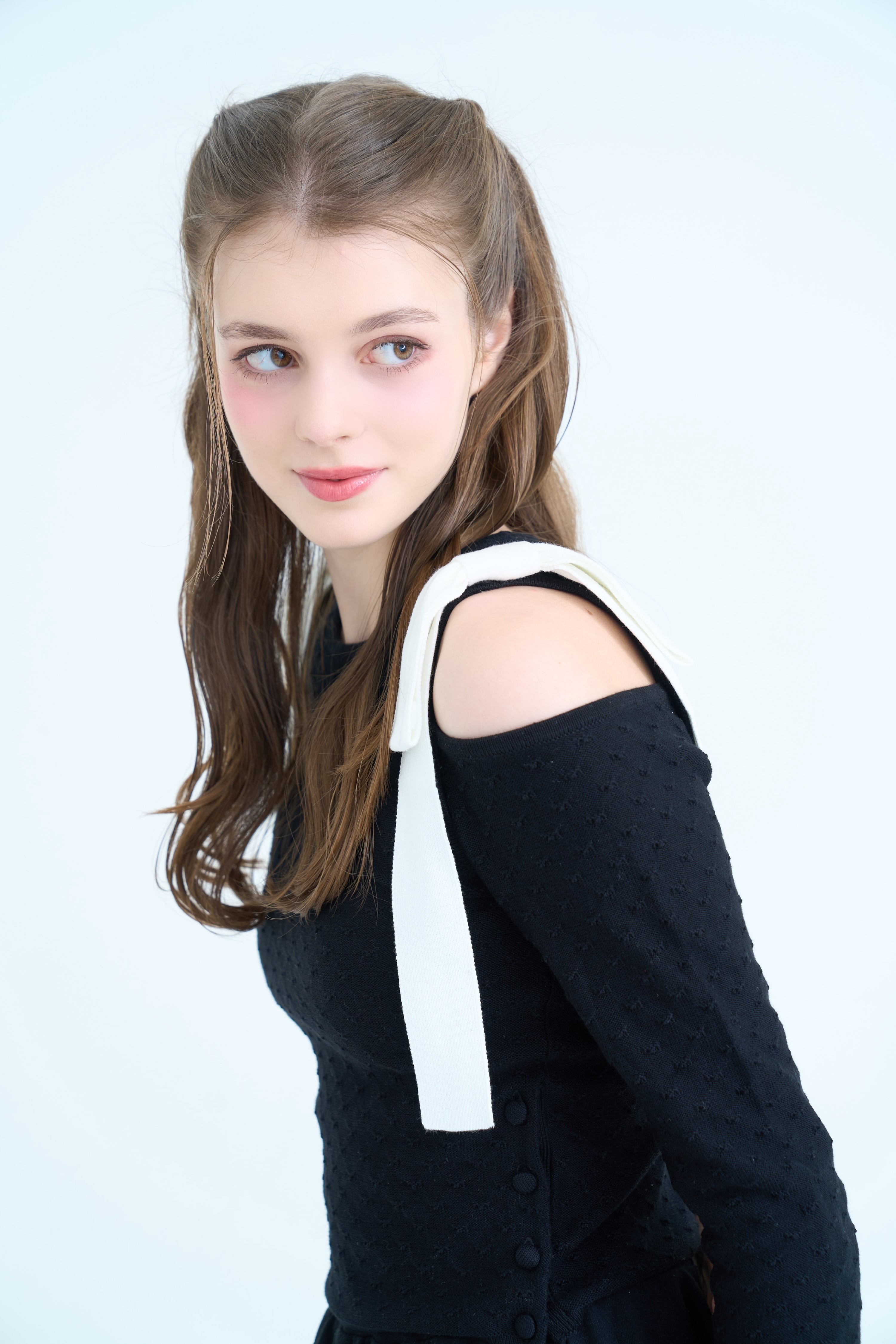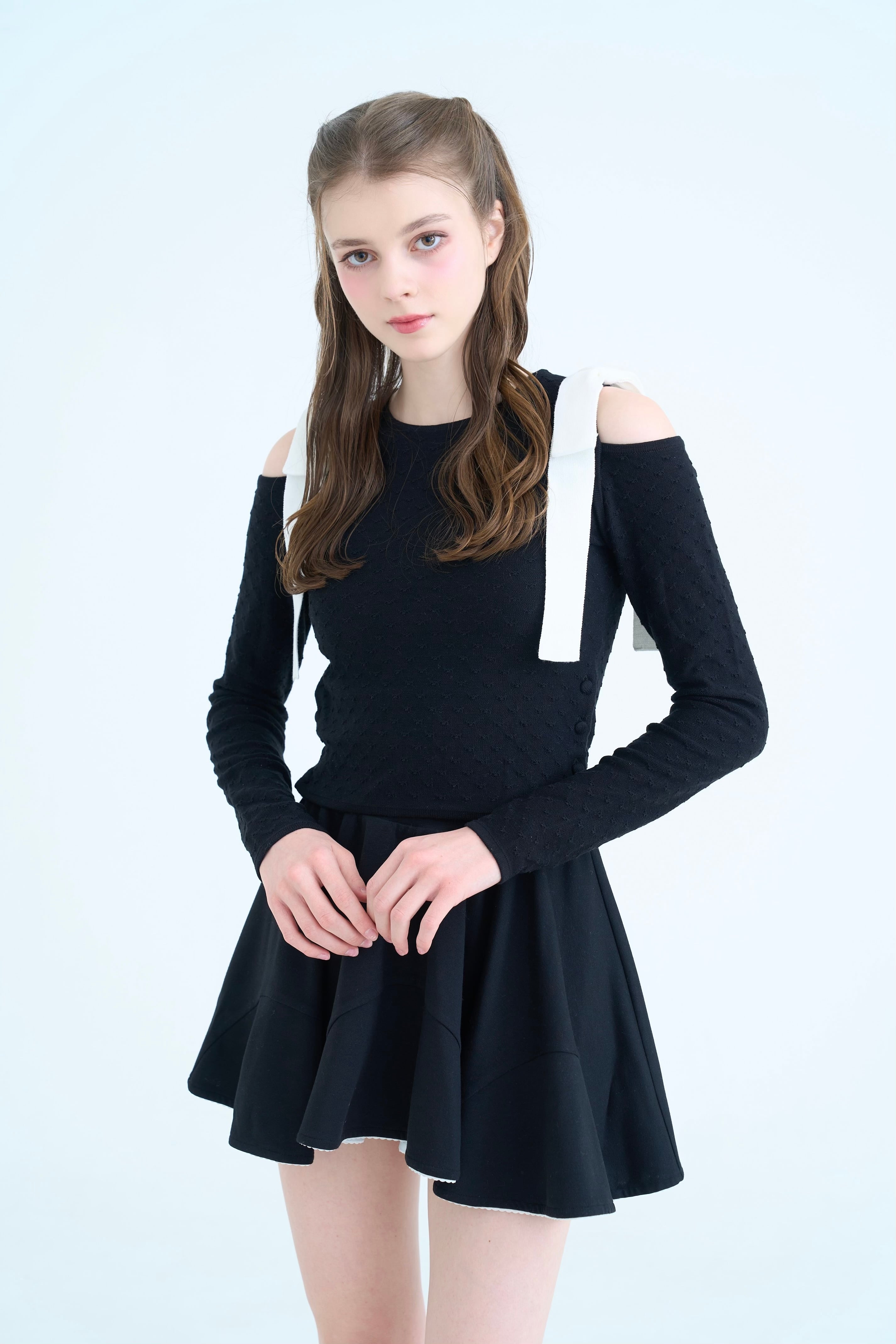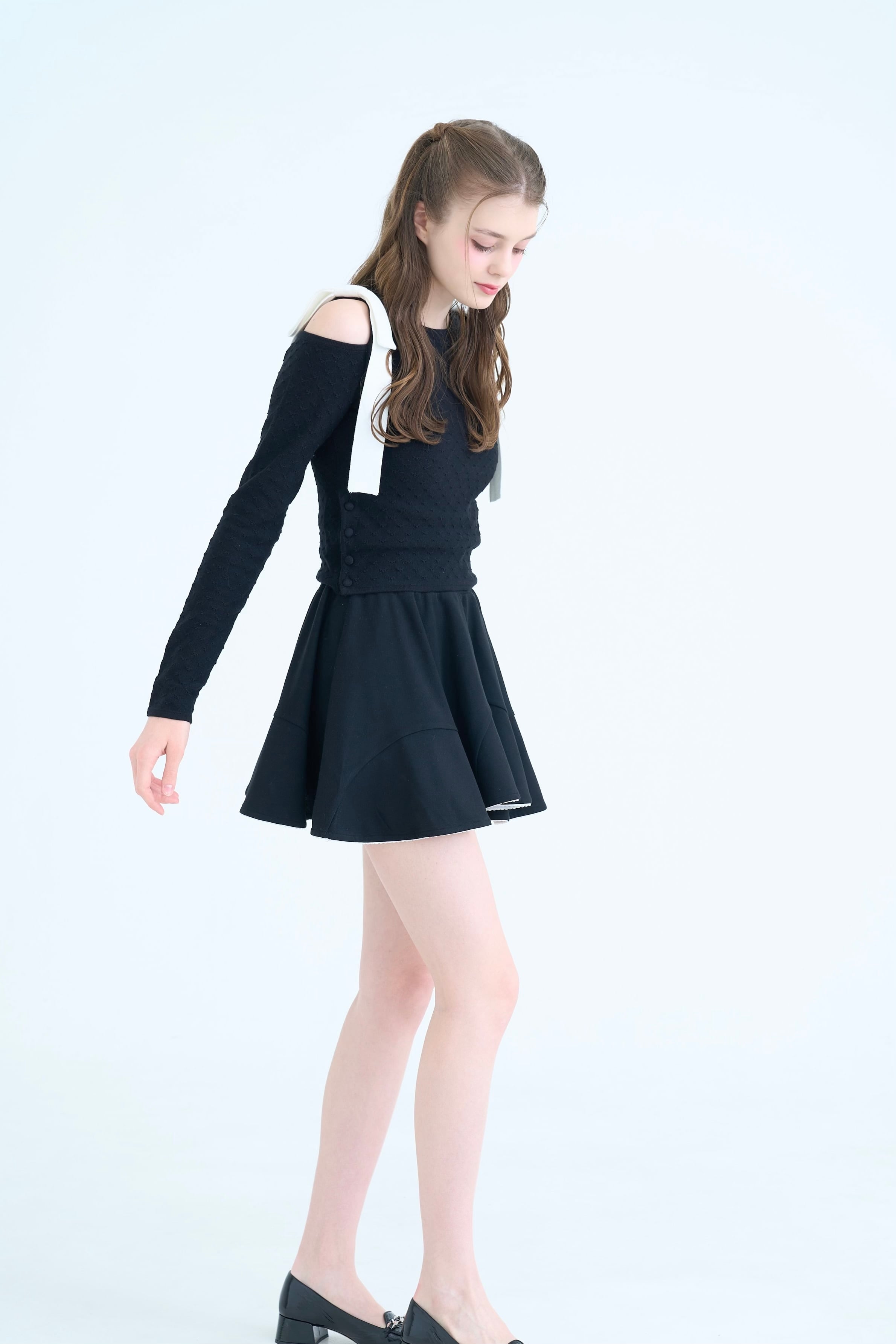 さりげない肌見せのショルダーデザインで、甘さの中に大人っぽさもプラスしました。