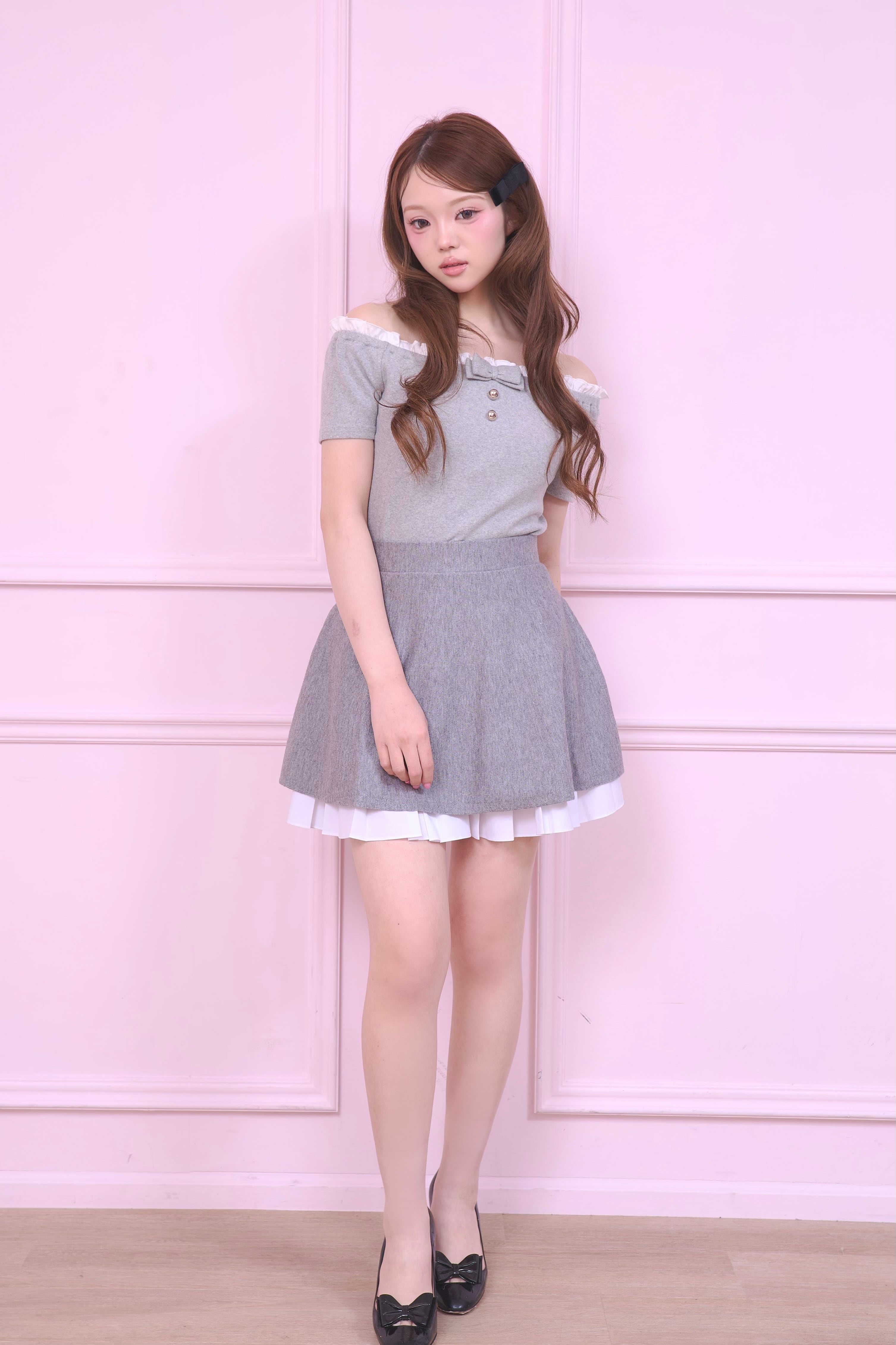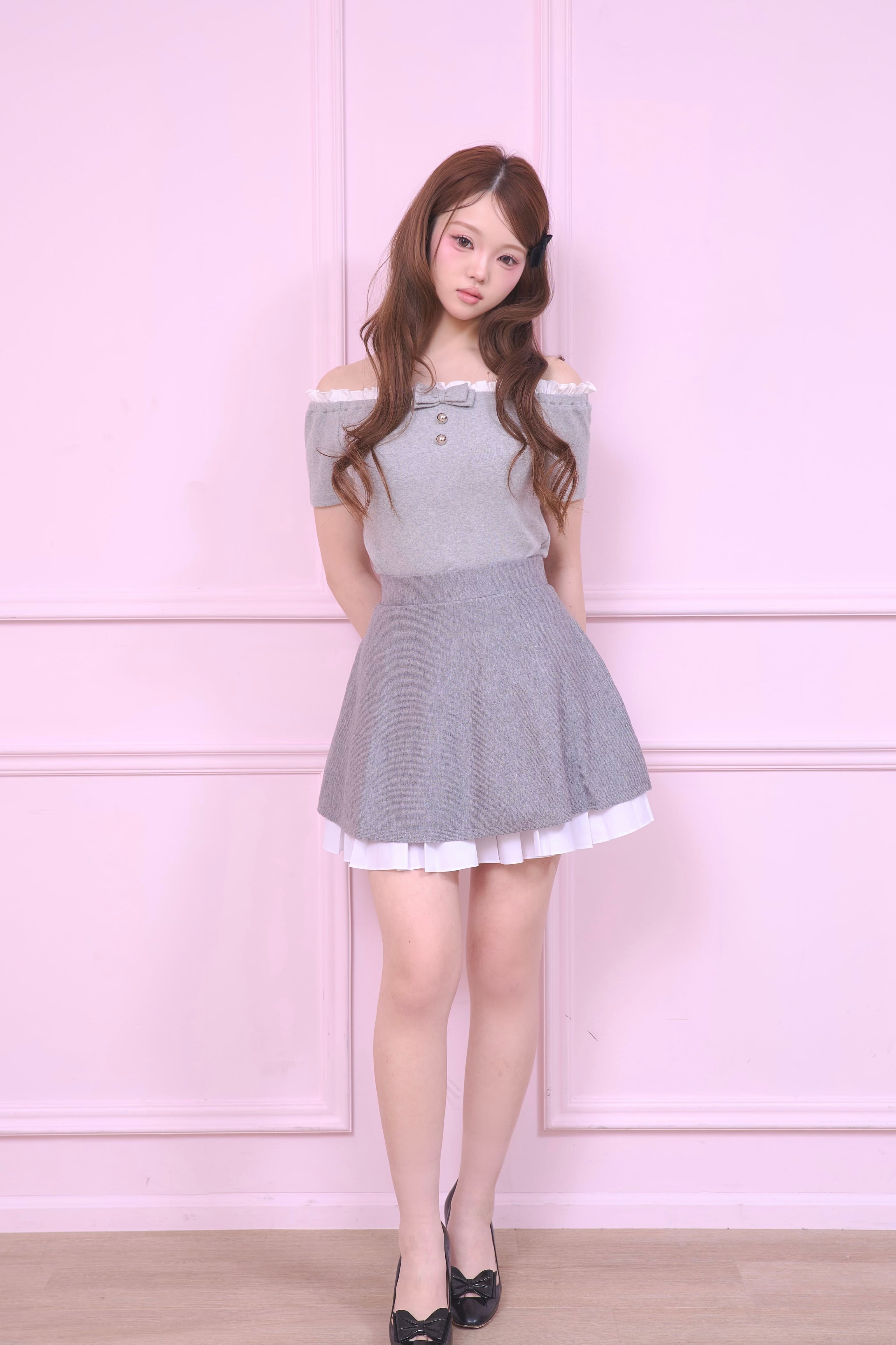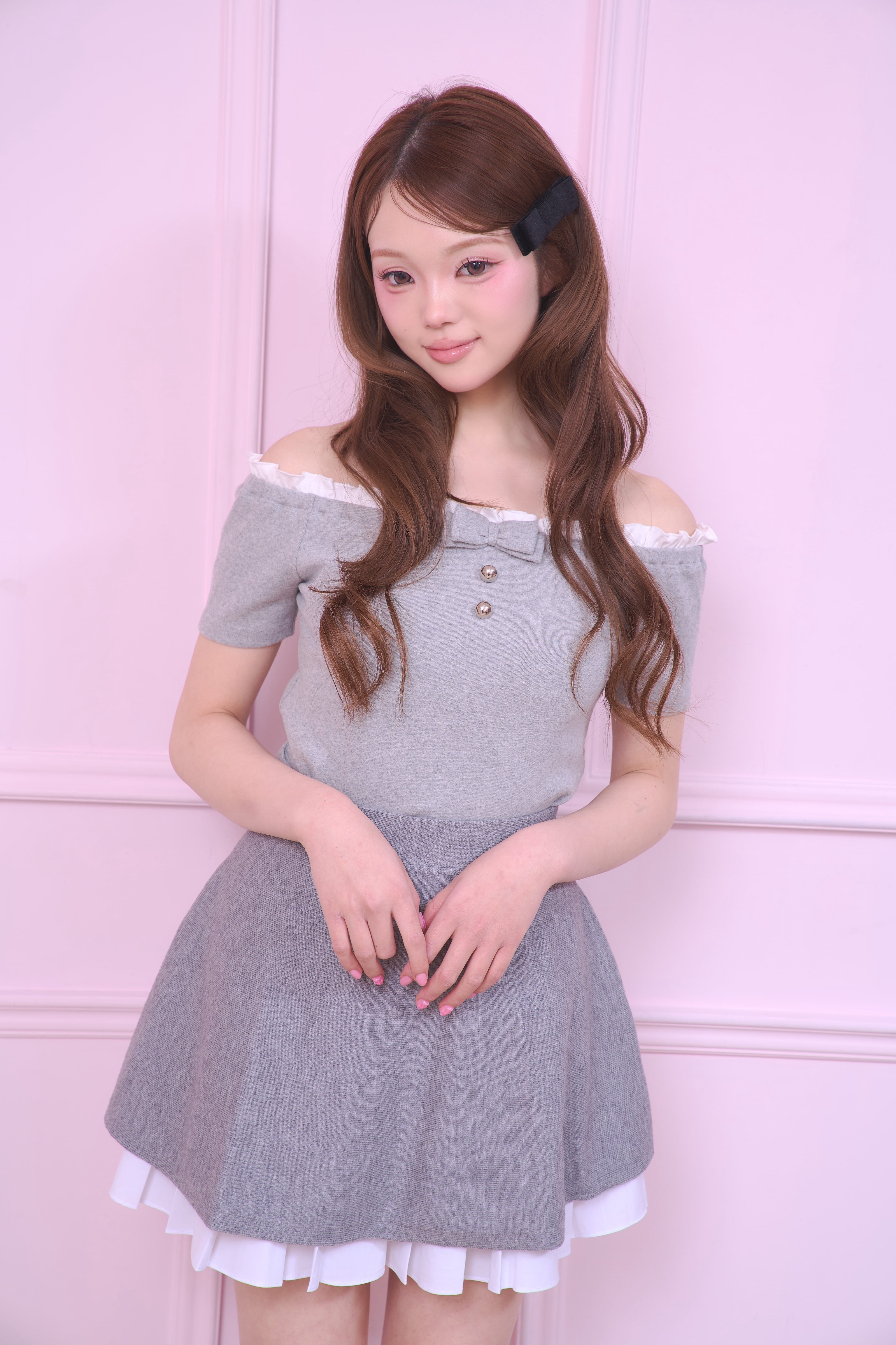 デコルテを綺麗に見せるオフショルデザインに、繊細なフリルをプラスし、柔らかく甘い印象に仕上げました♡