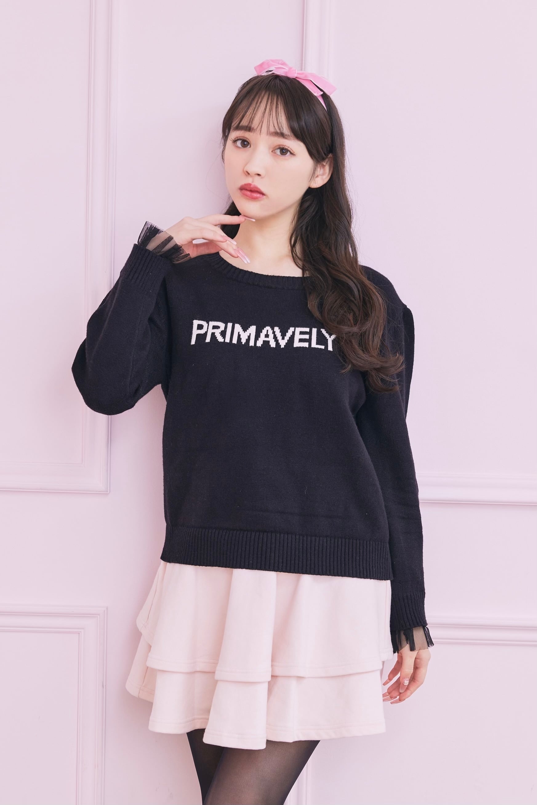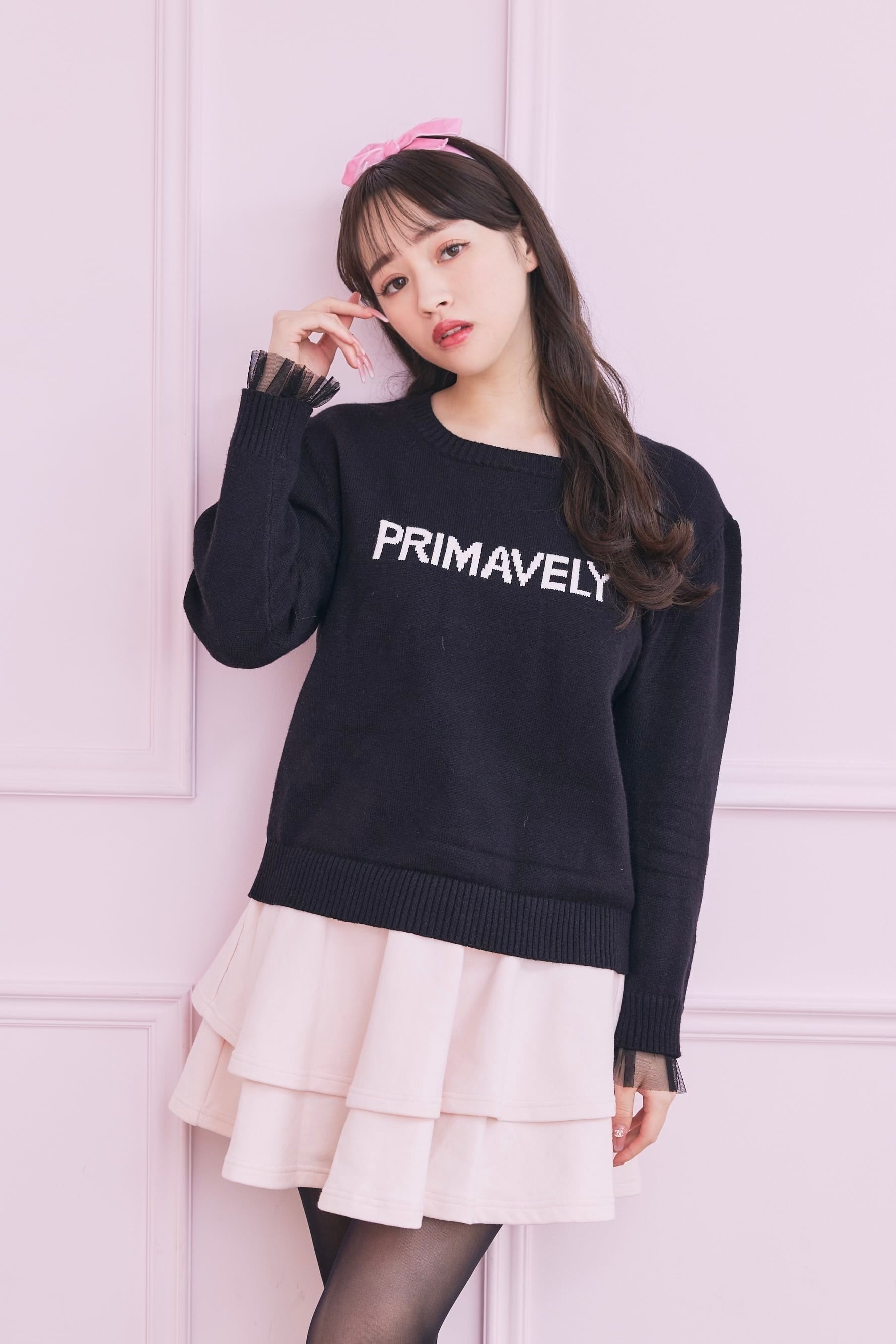 logo tulle knit〈black〉