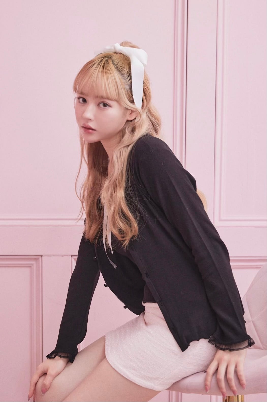 ▪︎カーディガンの袖口のチュールとキャミソールのリボン可愛いさりげないラブリーさを演出