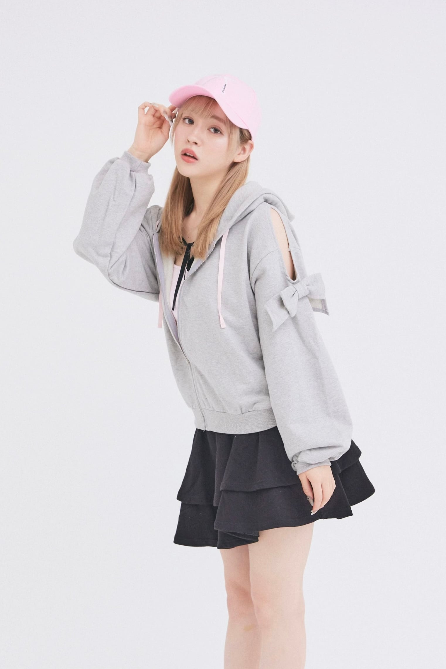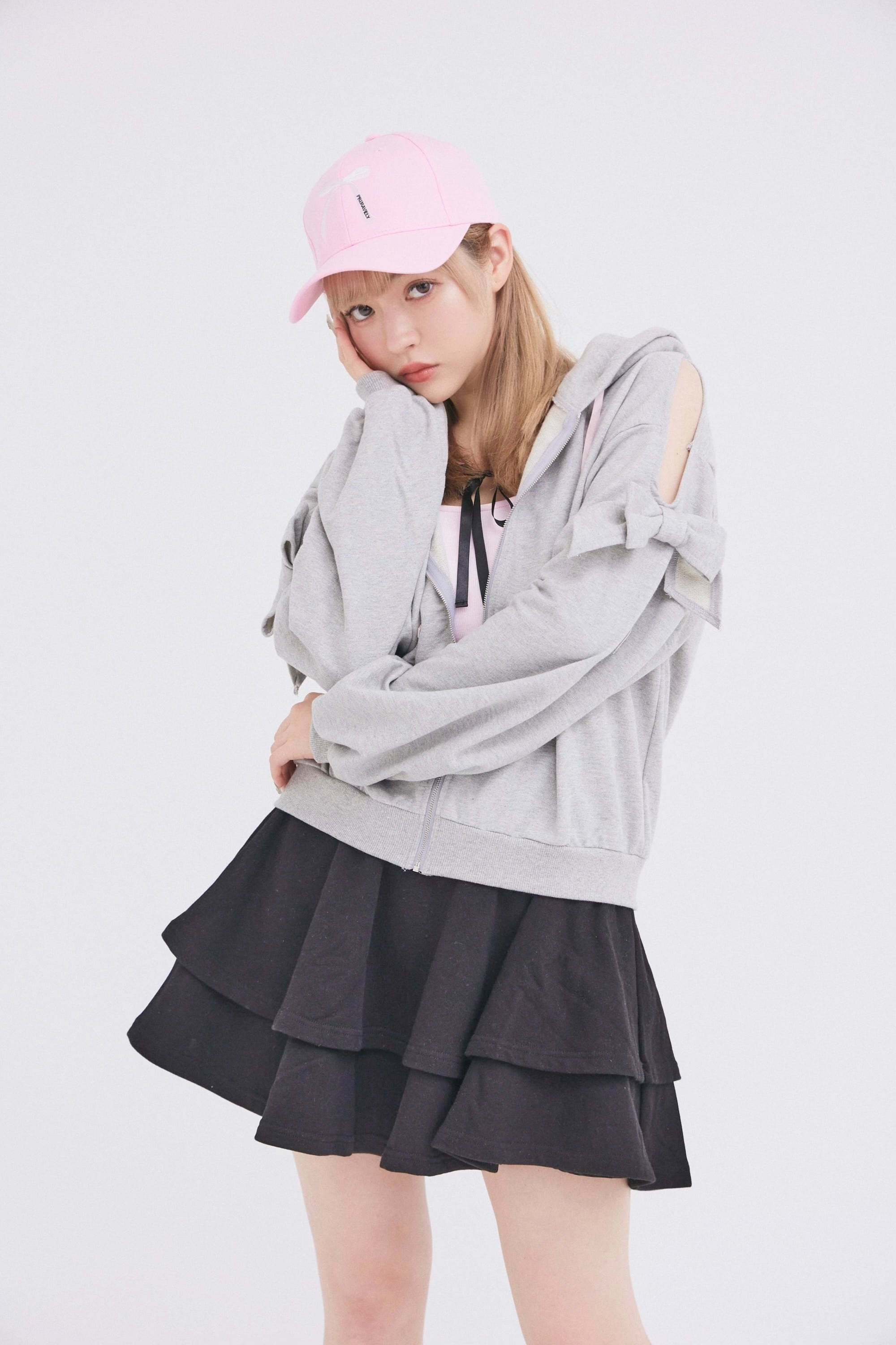 ▪︎カジュアルな素材でも上品な肩空きとリボンでラブリーさを演出