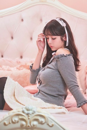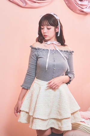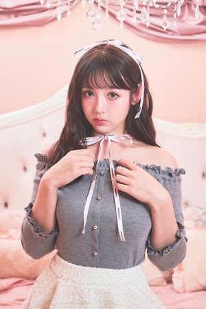 ▪︎チョーカー風のロゴリボンでキュートさを出しつつ上品なオフショルダーでセクシーも演出