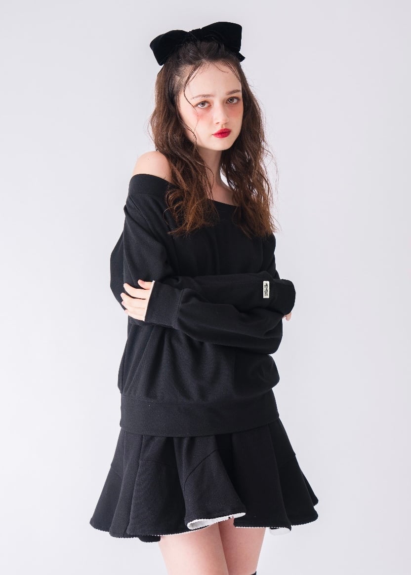 Scallopted off shoulder tops〈black〉