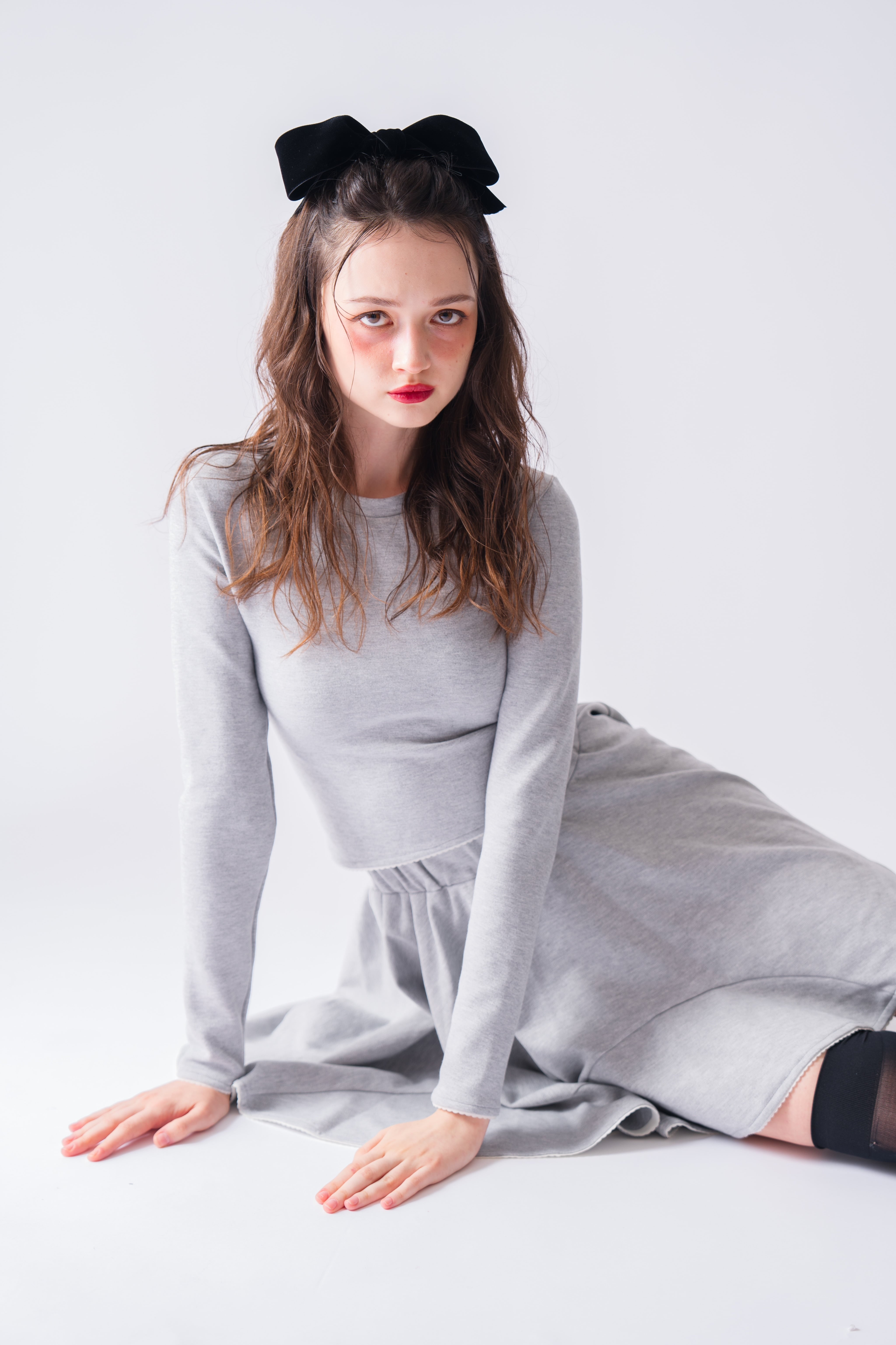 Scallopted flare skirt〈gray〉