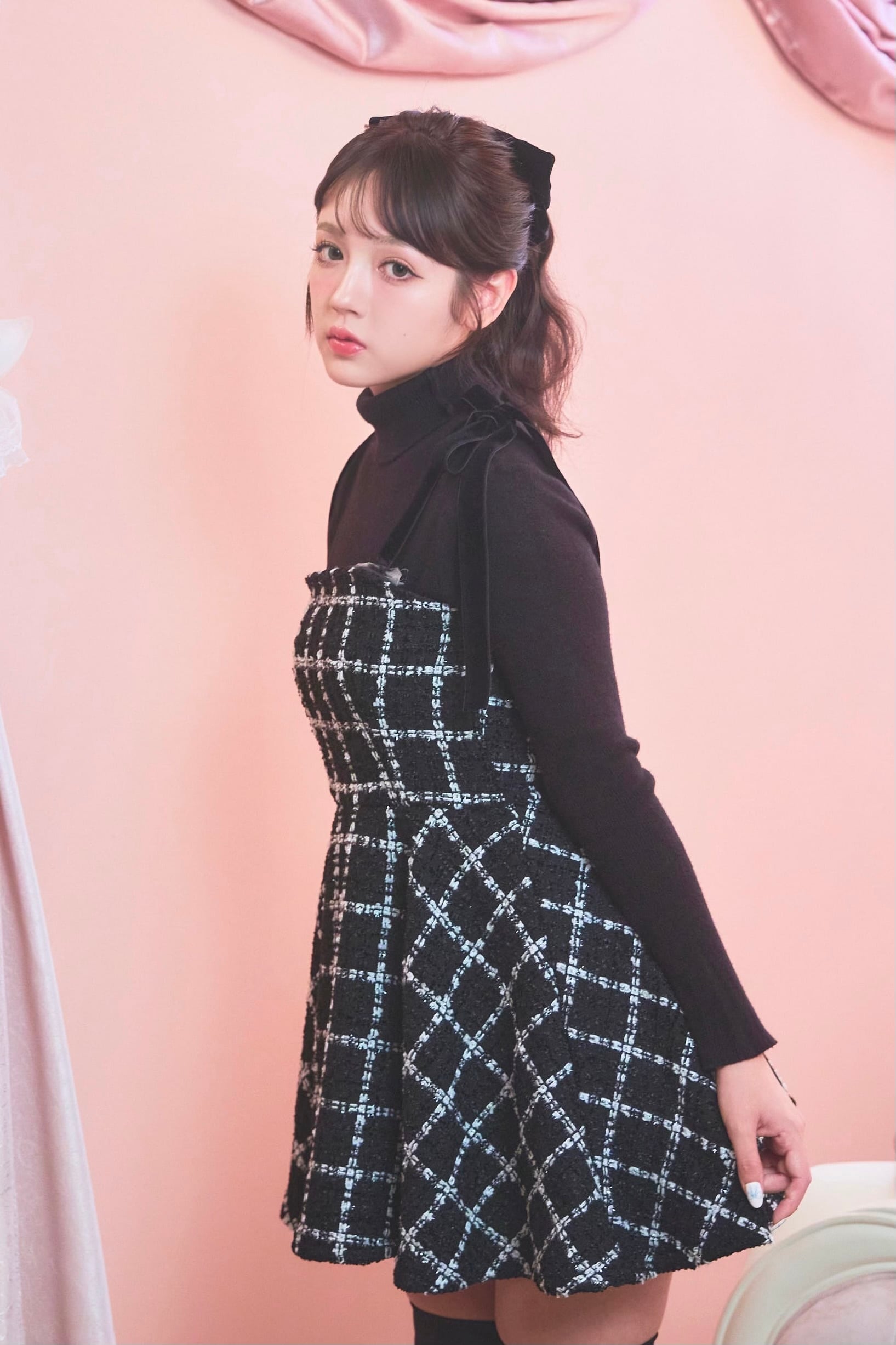 Gliter tweed dress〈black〉